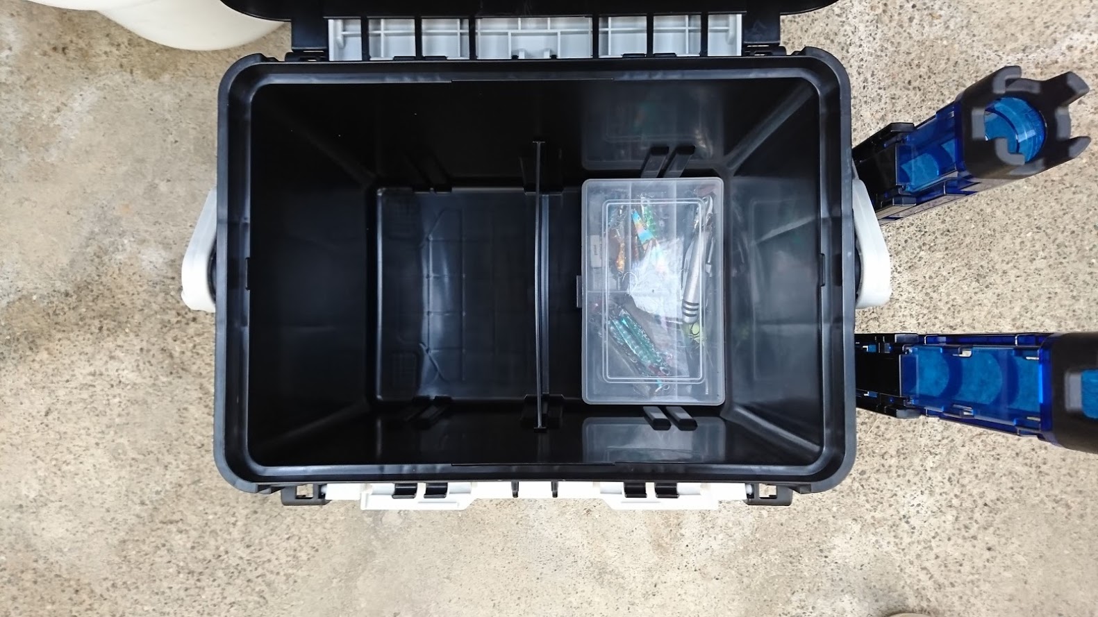 釣れるとは思っていなかったので、カメラもネットも、後ろに置いたまま。